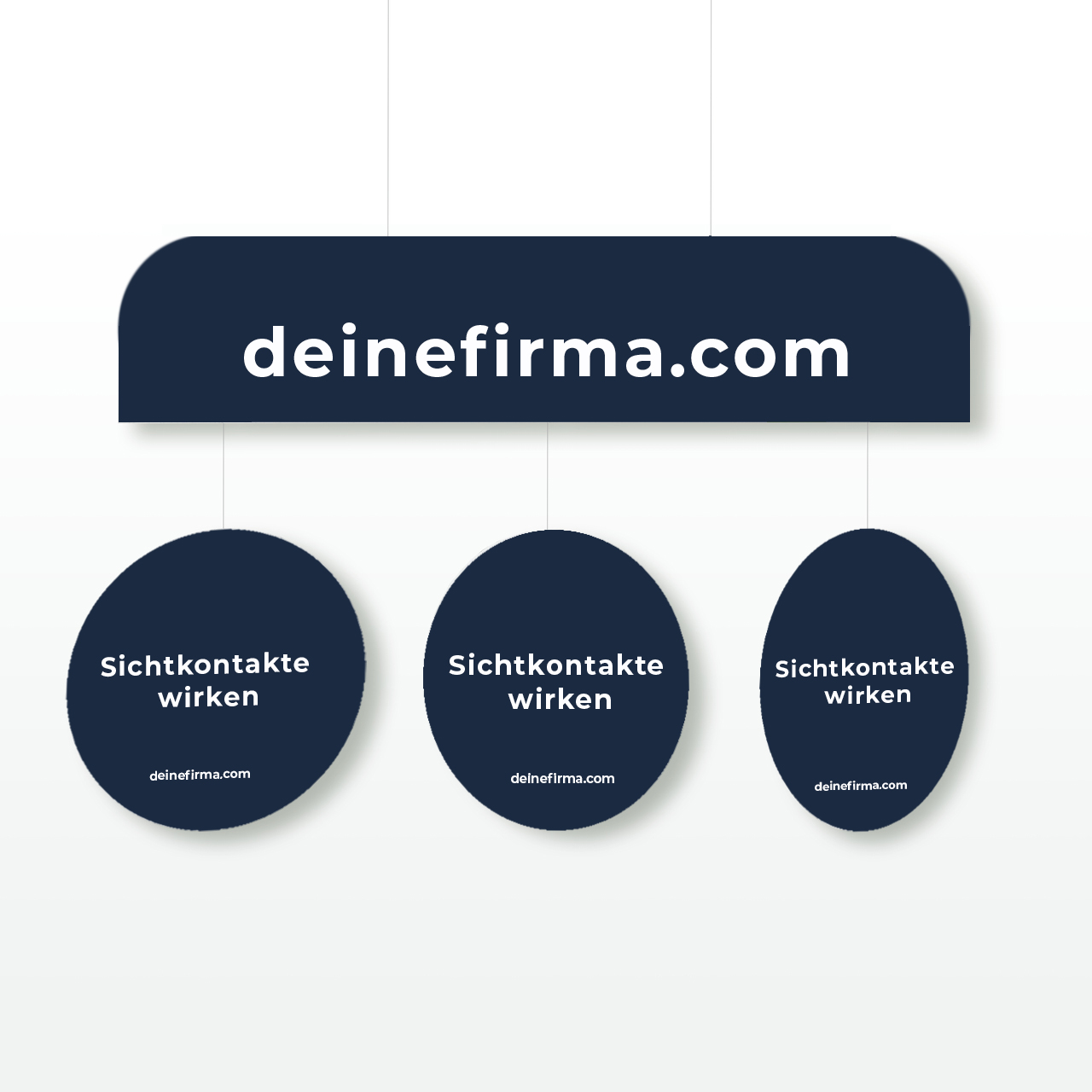 Deckenhänger kommen häufig in Supermärkten oder Bekleidungsgeschäften zum Einsatz. Sie sind doppelseitig bedruckt, können als Imagewerbung, als Unterstützung von Angeboten oder als informative Aktionswerbung verwendet werden. In Digitaldruck hergestellt, bieten Deckenhänger die Möglichkeit, große Auflagen herunterzubrechen auf individuelle Teilauflagen, speziell für einzelne Aktionen oder regionale Aktivitäten.